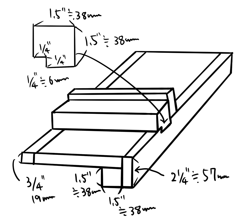 The stop block was 3/4″ x 3/4″ piece and cut out 3/16″ x 3/16″ and fit in to the groove so the stop block height above the surface 9/16″(14mm).